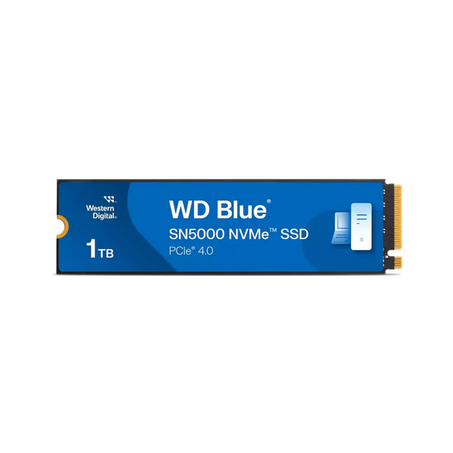 The WD Blue SN5000 1TB NVMe Gen4 SSD (model WDS100T4B0E) combines excellent performance and reliability for gamers, creators, and everyday users. Featuring a compact M.2 2280 form factor, it delivers lightning-fast PCIe Gen4 x4 speeds—up to 5 150 MB/s sequential read and 4 900 MB/s sequential write—thanks to advanced 3D TLC NAND and Western Digital’s nCache 4.0.