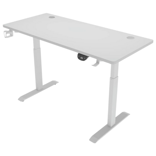 The DESK-GAMING-Y100-BLACK features a carbon fiber desktop with an electric motor for effortless height adjustment from 72 to 117 cm. Equipped with a headphone hook and cup holder, this 140 × 60 cm desk combines functionality and style — perfect for gaming or work setups.